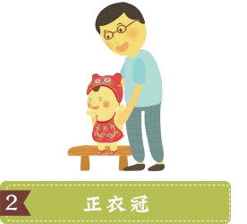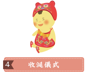 儀式開始前由父母為寶寶換上新衣,現場提供虎帽及龍鳳圍兜 ,供當日寶寶免費穿著;家長亦可加購全新小虎禮盒或加購圍兜,作為娘家贈送寶寶的「頭尾禮」,寓意為寶貝添福添壽喔!