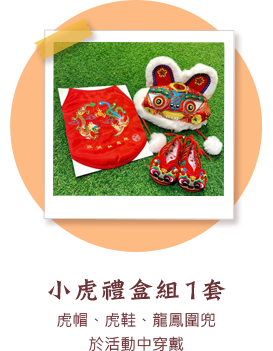 - 儀式內容: (活動中提供虎帽、圍兜穿戴、全程活動主持人帶領)